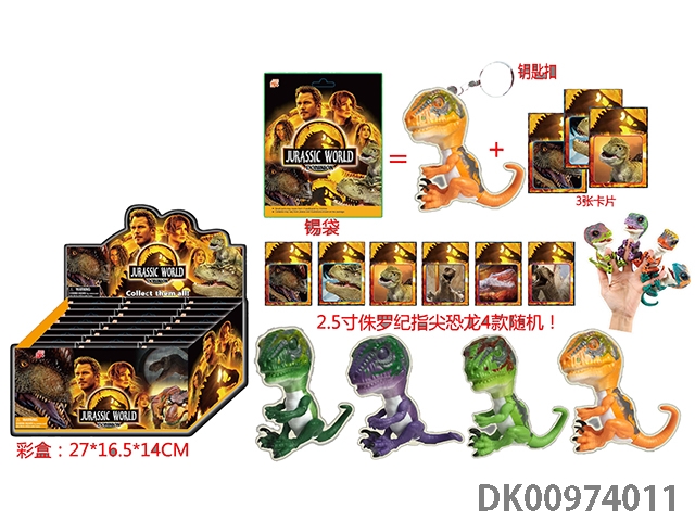 2.5-Inch jurassic fingertip dinosaur single (with key chain) and 3 cards in tin bags 24 tin bag display box cards and 4 dolls random