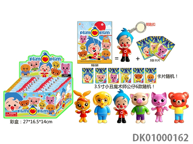 3.5-Inch clown magician doll (with key chain) and 3 cards tin bag 20 tin bag display box cards and 6 dolls random