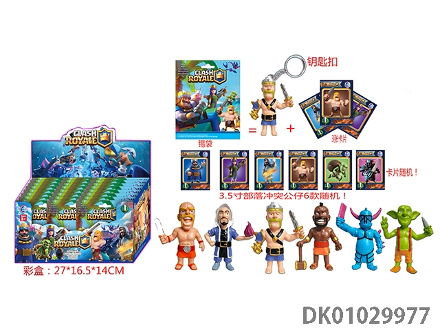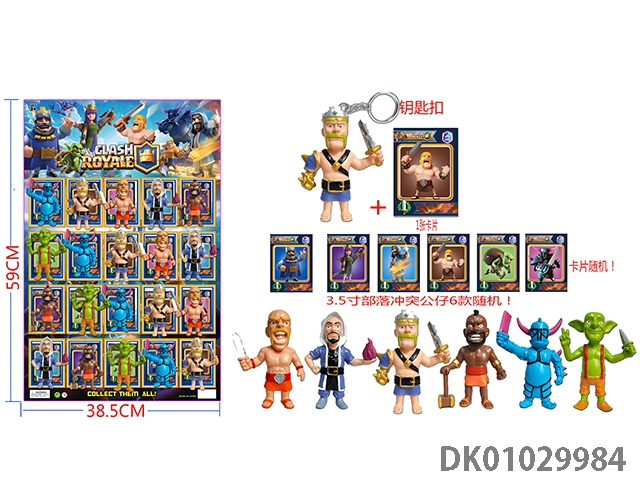 3.5 Inch tribal conflict single (with key ring) and one card plastic bag containing 6 types of 20 large cards and 6 types of dolls randomly