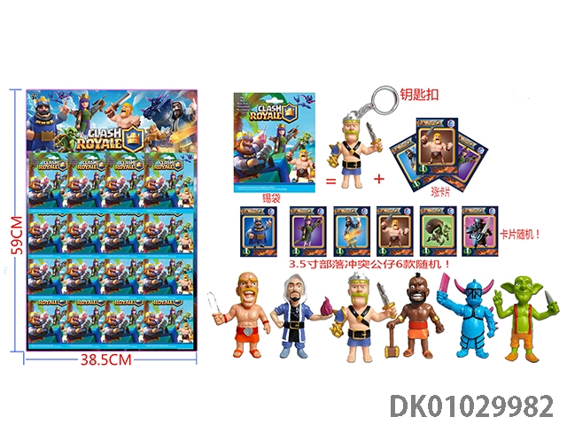 3.5 Inch tribal conflict figurine single (with key ring) and 3 cards tin bag 24 tin bag display box cards and 6 figurines randomly