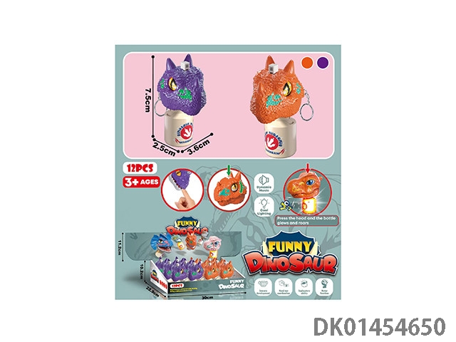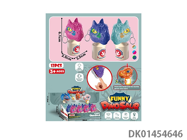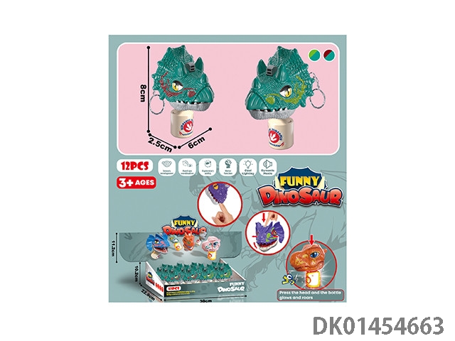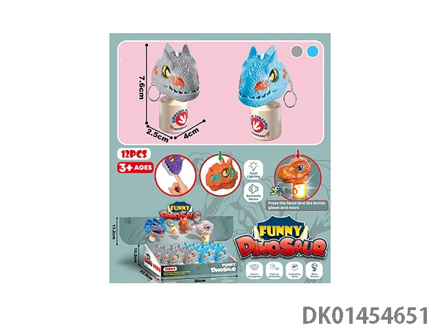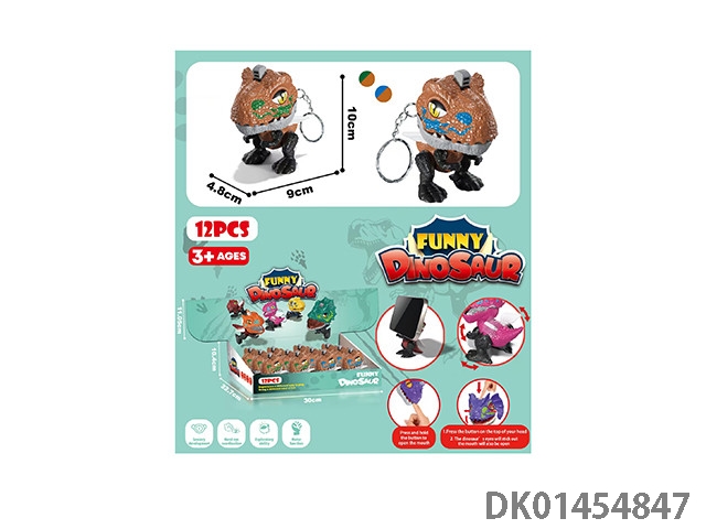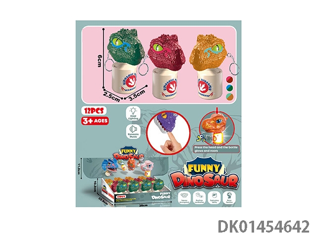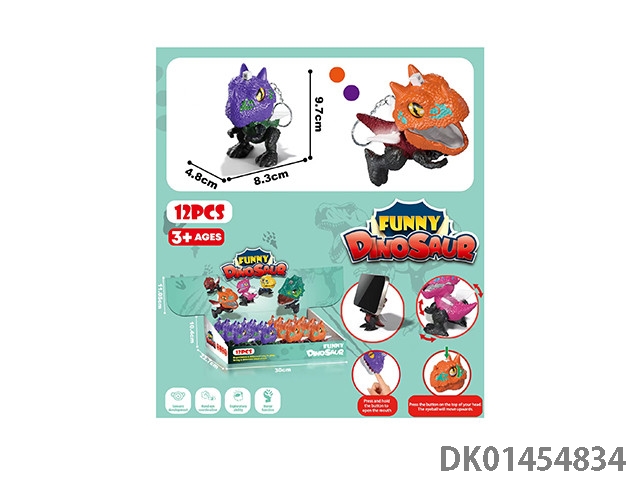 Keychain ring dinosaur with sound and light (large head and mouth can be opened) in 3 colors, set of 12 pieces/BOX