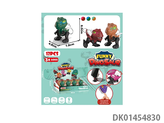 Keychain ring dinosaur (small head and mouth can open) 3 colors set of 12PCS/BOX