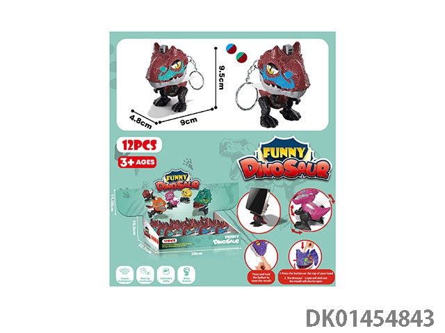 Keychain ring dinosaur (medium head with open mouth/eyes moveable) set of 12PCS/BOX