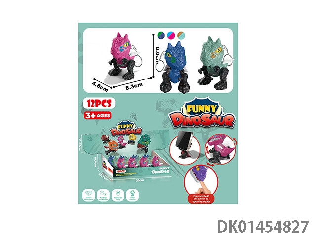 Keychain ring dinosaur (small head and mouth can open) 3 colors set of 12PCS/BOX