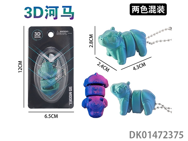 3D hippopotamus keychain (2-color mixed)