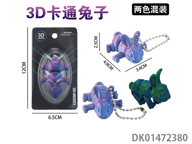 3D cartoon rabbit keychain (2-color mixed)