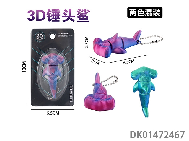 3D hammer shark keychain (2 color mixed)