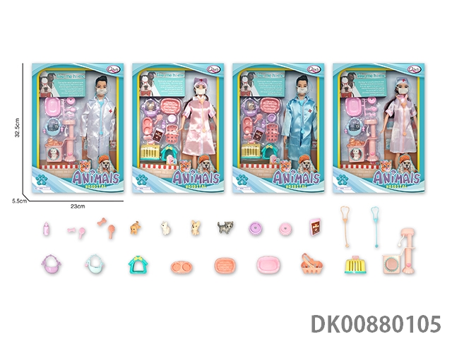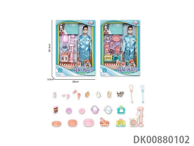 Pet hospital series female nurse multicolor mixed cat and dog house