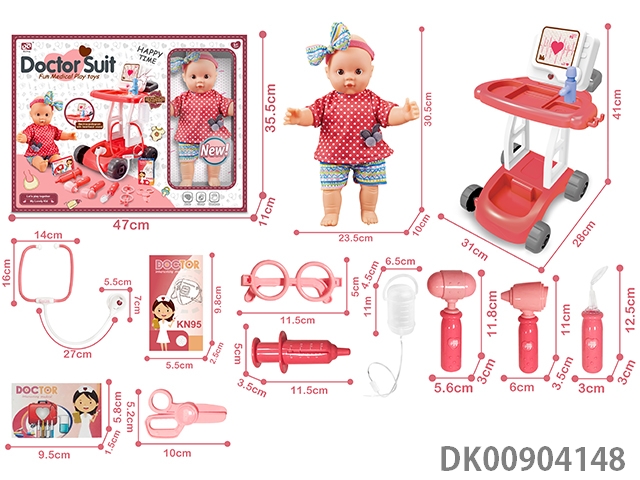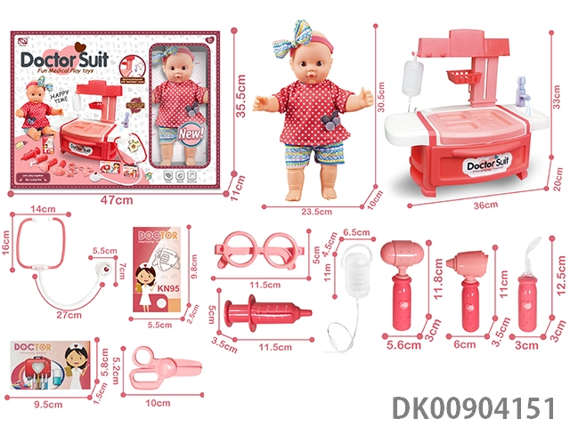 12 Inch cotton body pond glue doll and medicine have a functional small table