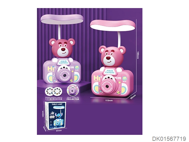 Cartoon pink bear camera projection small desk lamp, 3 levels