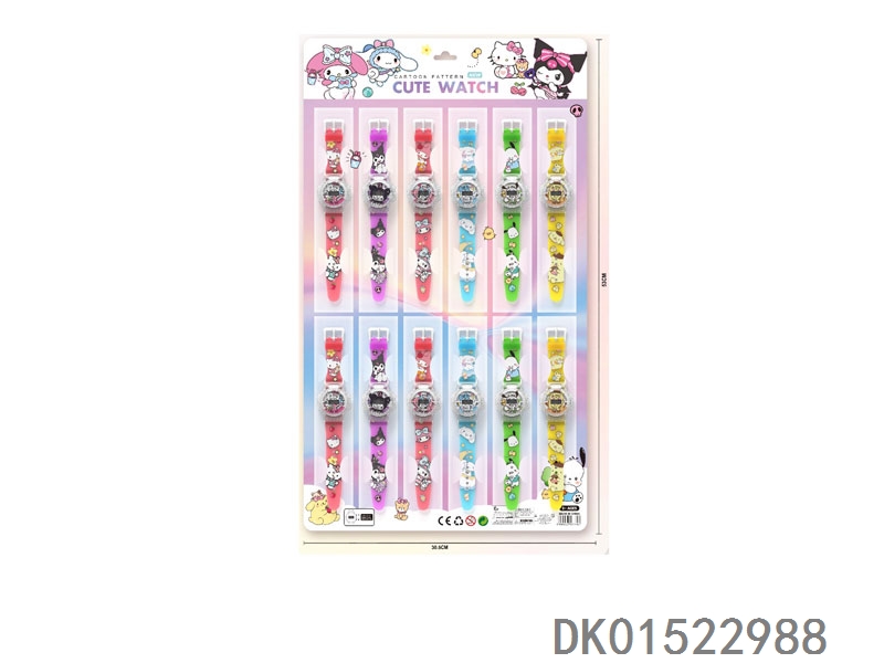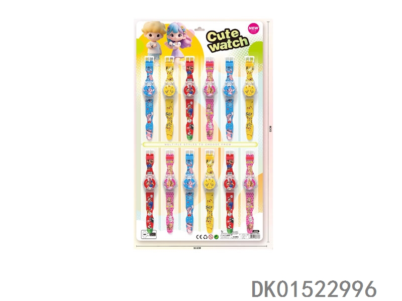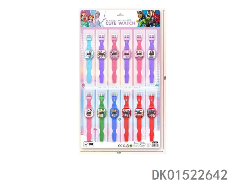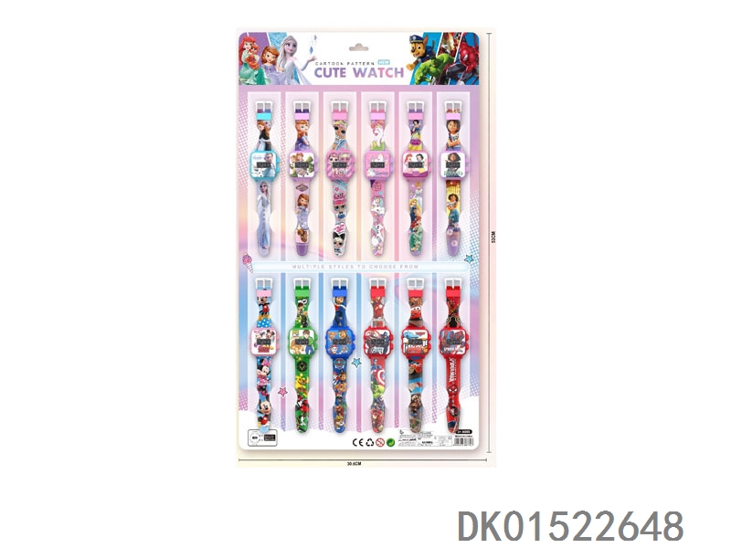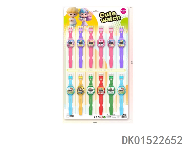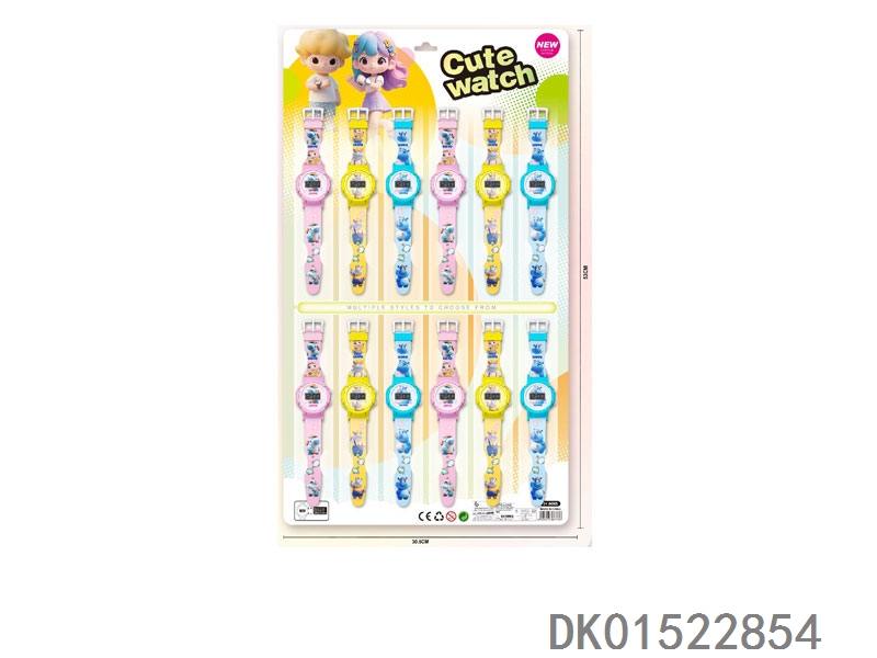 4 Flip electronic circular watches with ribbon patterns, 12 pieces per board