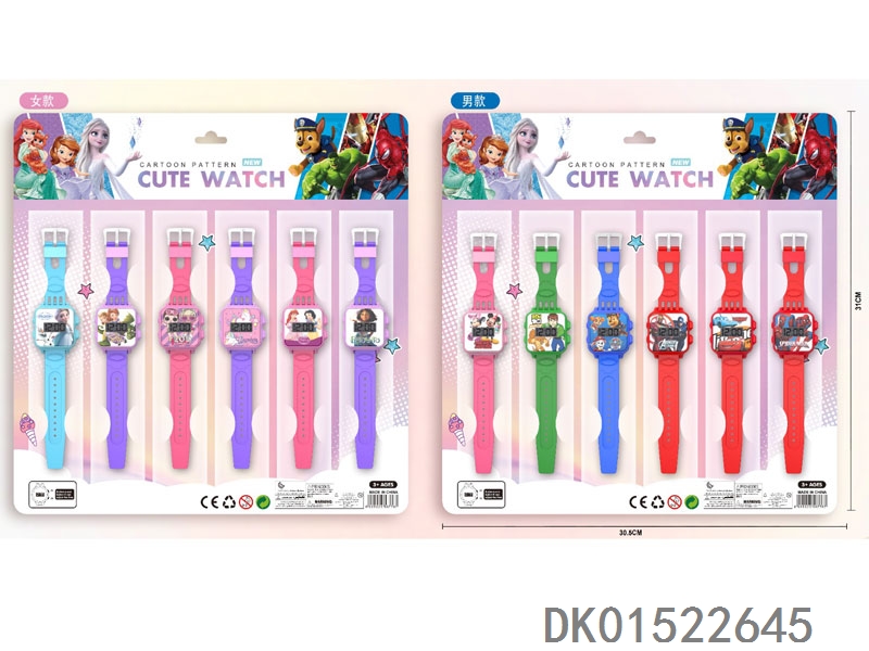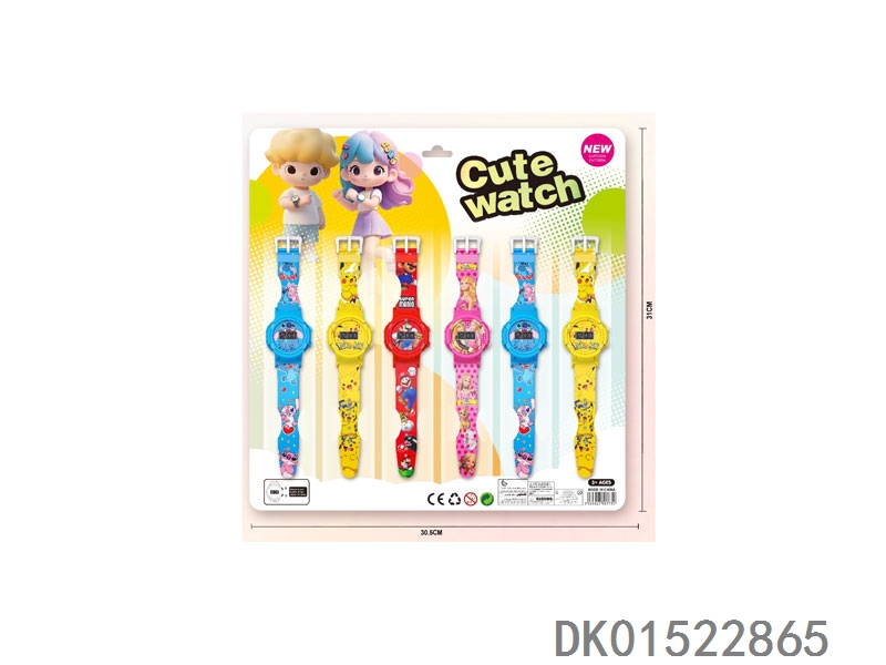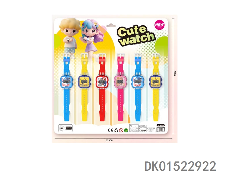 6 Flip electronic circular watches with ribbon maze, 12 pieces/board