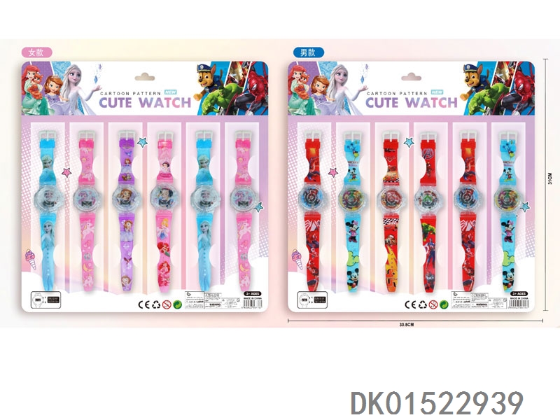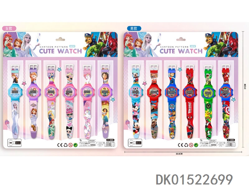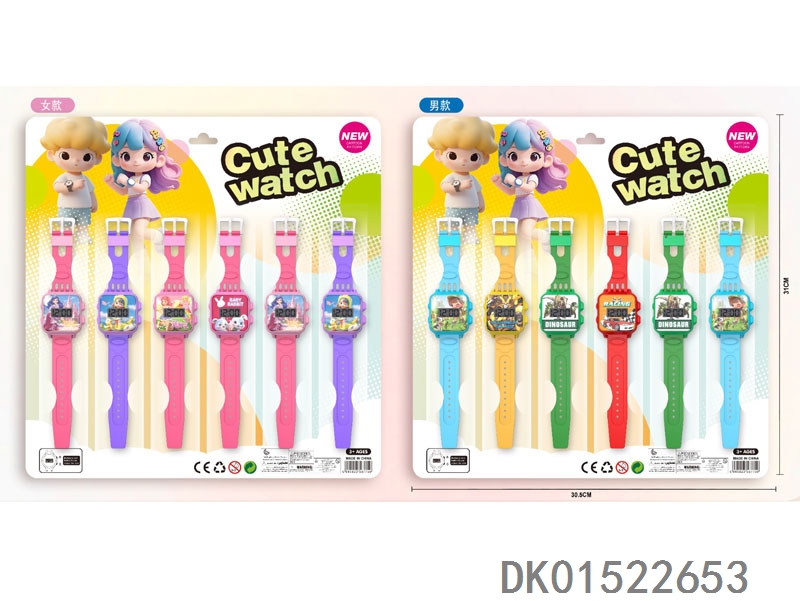8 Light, music, flip electronic circular watches with ribbon maze, 6 pieces/board