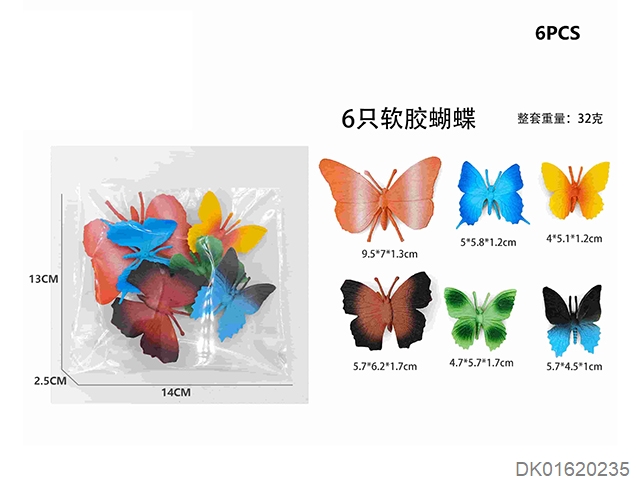 6 Soft rubber butterflies