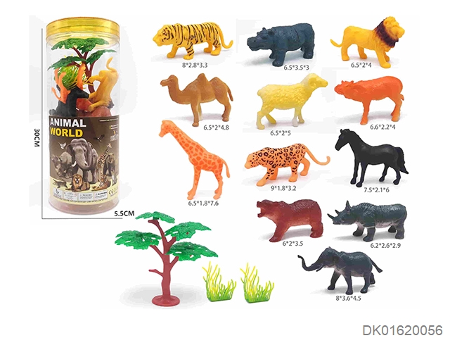 2 6.5-inch dinosaurs paired with 12 small dinosaurs