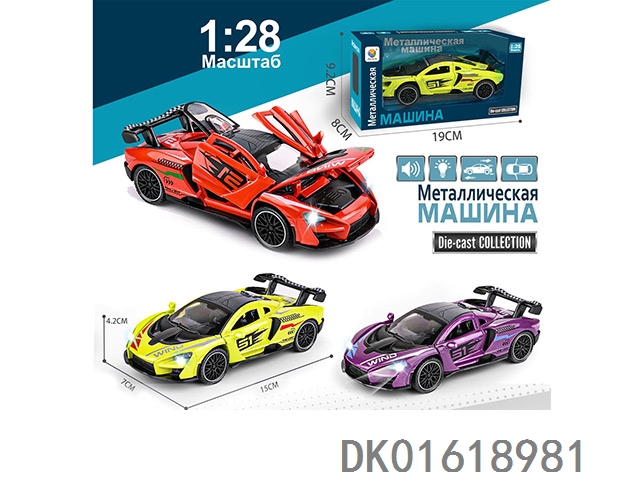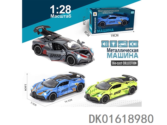 (Russian) 1:28 simulation 4 door opening lights, music, rebound alloy racing car