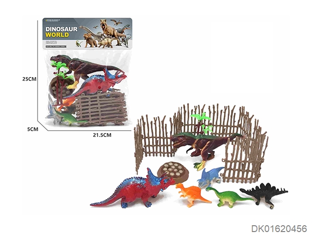 Scene b of a large fence with 2 and 4 small dinosaurs