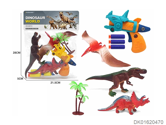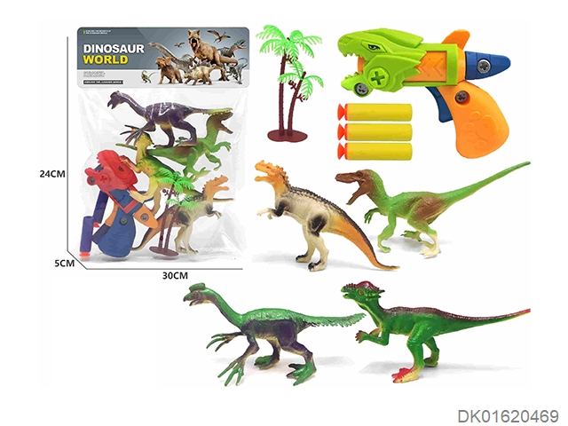 3 Dinosaurs and 1 soft bullet gun (equipped with 3 bullets)