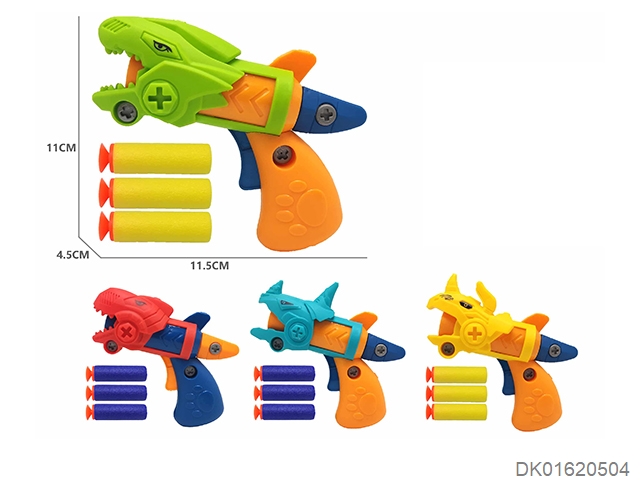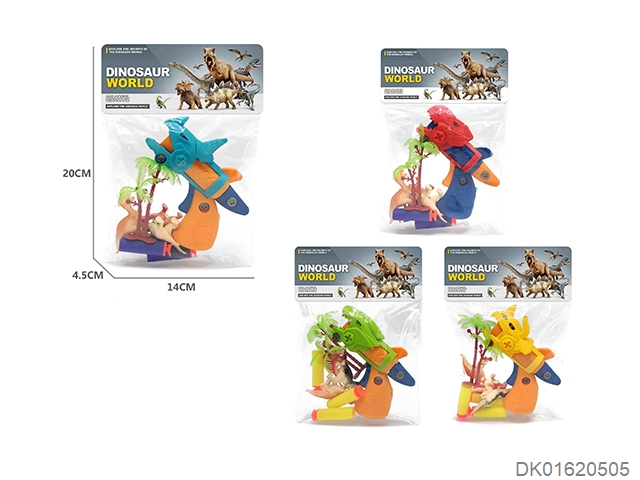 1 Soft bullet gun and 3 dinosaurs (with 3 bullets)