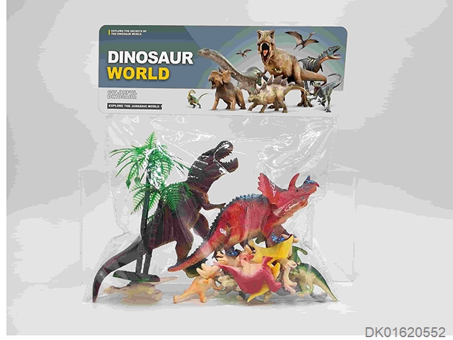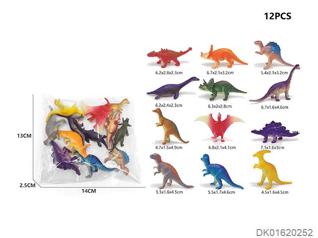 2 6.5-inch dinosaurs paired with 12 small dinosaurs