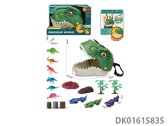 Tyrannosaurus rex storage backpack, 3 dinosaur cubs, and catapult skeleton accessories
