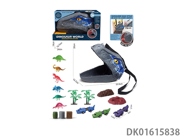 Velociraptor storage backpack with 6 dinosaur cubs and accessories in one bag