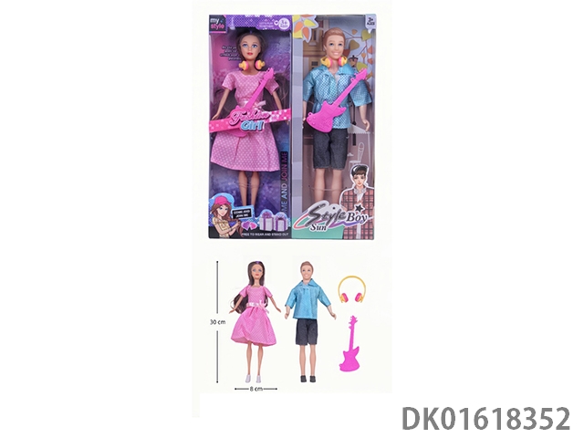 11.5 Inch fashionable male and female dolls paired with guitar headphones, two multi-color mixed designs
